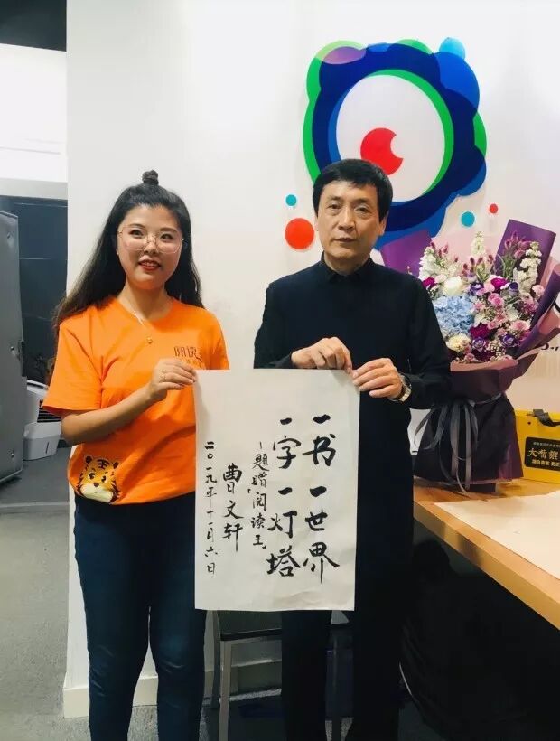 那么,我经常说写作是支剑,阅读是把弓,这句话的意思是什么呢?我想表达的是:阅读是写作的前提,写作是阅读的结果。这句话讲的是阅读与写作的关系,如果说写作是一支箭,它必须有一个强大的弓,这个弓就是阅读。如果没有阅读也就没有写作。 所以孩子们,如果你们想把作文写好,必须记住一个最基本的道理:读书读得越多越好。只有把书读好,你才能把作文写好。如果你只是想着写作文,不去读书,你的作文永远一辈子也不可能写好。 如何让孩子爱上阅读? 家长经常苦恼孩子不爱阅读这个问题。很可能的原因是在孩子小时候,家长没有培养孩子的阅读习惯。一个人的童年是一个人一生中最重要的时光。所以,尽量让孩子在童年期多阅读,扩大孩子的阅读范围。 怎么让孩子爱上阅读?我觉得其中有一个方法就是朗读。 多少年前我去深圳做活动,我发现有一个男孩朗读我的一个小说,居然让我感动了,热泪盈眶。后来晚上又听他们老师朗读我的《青铜葵花》里头的一段风景描写,当场所有的男老师眼睛都红了,所有的女老师都流泪。就在那一刻我体会到了一个事情,这就是声音的力量。所以我曾经讲过,所有的语文老师都应该是一个合格的朗读者。如果你的孩子不愿意学语文,如果你的孩子不愿意看书,那么你就来朗读作品。 当然,还要有科学的阅读方法引导,给孩子选择合适的、他自己喜欢的书去读,不要让孩子把阅读当成一种负担。 (曹文轩与阅读王老师) 阅读可以让孩子持久进步 孩子的所有进步大概都要通过读书获得。天下万事,没有一件事情是与读书无关的。孩子如果要在各方面取得进步,一定要从小养成阅读习惯,扩大阅读范围。 读书能够让孩子树立正确的人生观;读书可以培养孩子的审美情趣,让孩子变成一个有情调的人;读书能让孩子变成一个非常具有悲悯情怀的人。仔细想想,这些通过阅读获得的进步,都是需要一辈子修炼的事情。 (曹文轩为阅读王亲笔题字) 阅读王是专注于小学生的阅读兴趣班,致力于“用阅读推动小学生的持久进步、让半亿小学生爱上阅读”,是国内线上阅读兴趣班的开创者。阅读王主张“深阅读、愿表达、强理解”阅读习惯的培养及孩子持久品质的塑造。